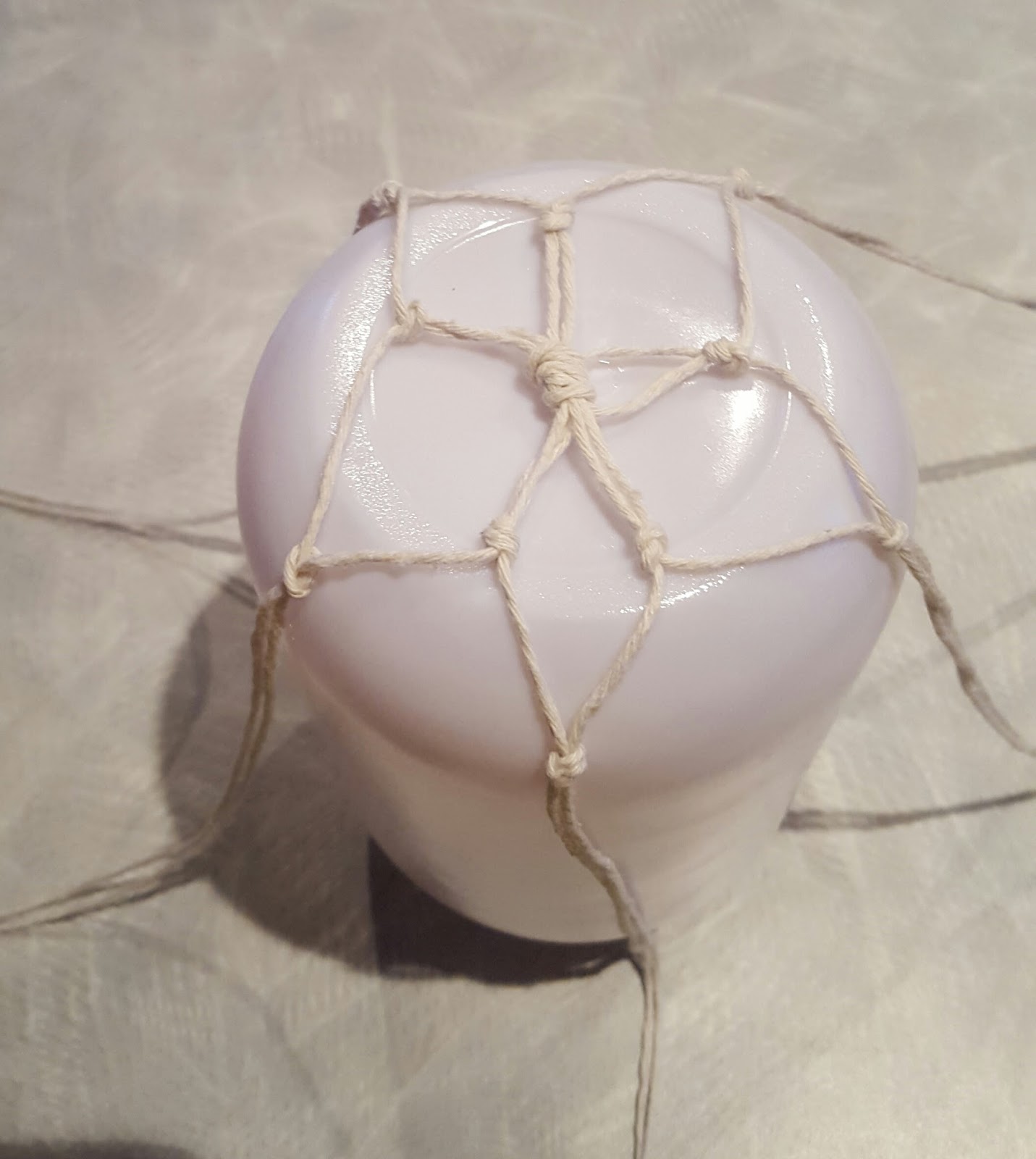 twine all around the jar until you reach to the top of the Mason Jar, divide