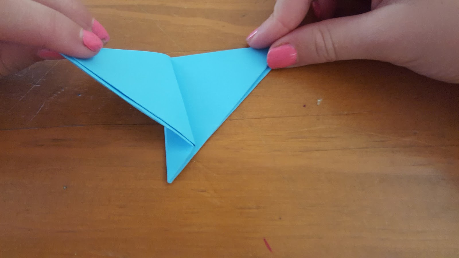 you tie another two strips together, one strip from each previously tie pair so you get a little diamond shape